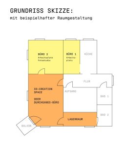 Eine helle und gut geschnittene Räumlichkeit im 1. OG, die Platz für Ideen, Begegnung und Gestaltung bietet.